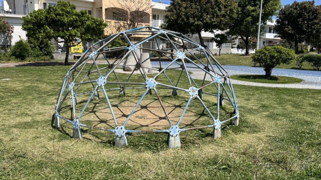 公園の中で一番に目を引くのが、こちらの球形をしたジャングルジムです!