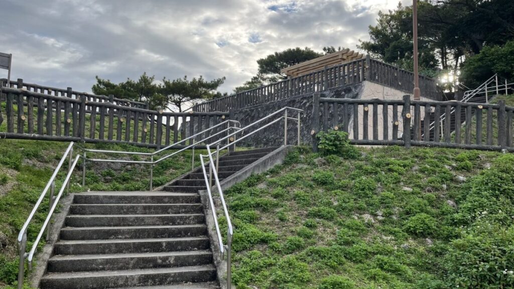 一番気をつけておきたいのが、駐車場から広場に降りる際に必ず「階段」を通ること 🛒