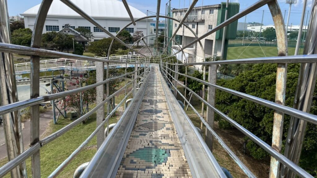 メインのロング滑り台は見た目のインパクトは抜群ですが、実際に滑ってみると「滑りはかなりゆっくり」。