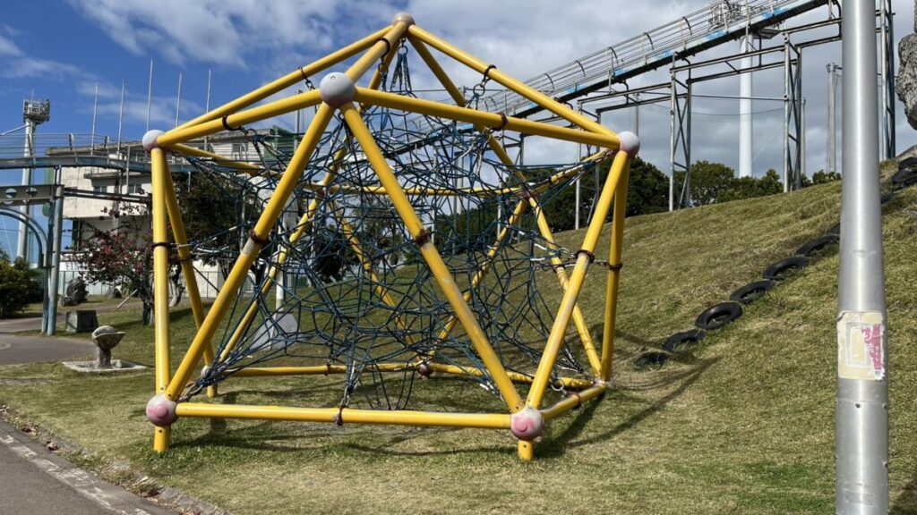手足を使って網を登っていくスリルがあり、小学生くらいのお子様たちが頂上を目指して元気に遊ぶ姿が印象的でした。