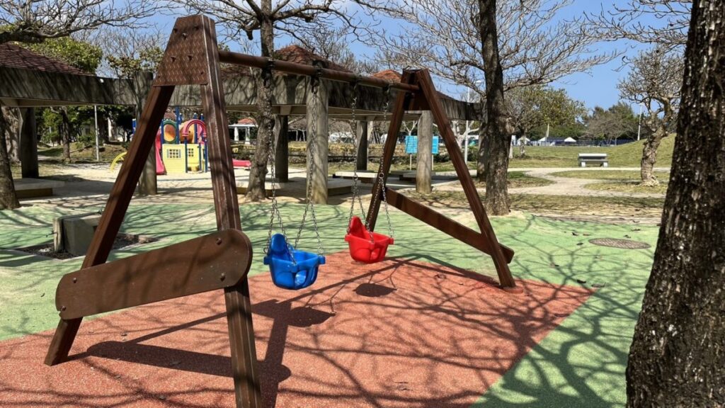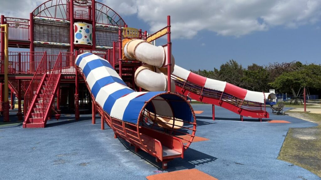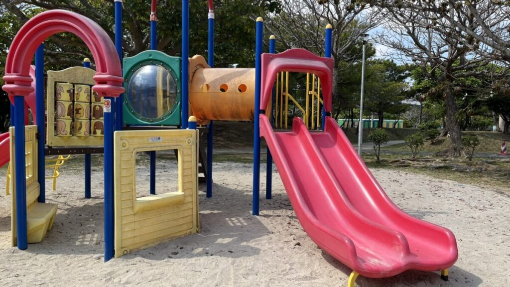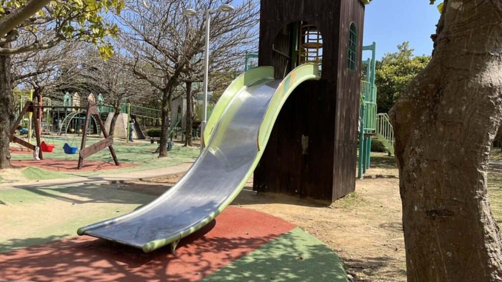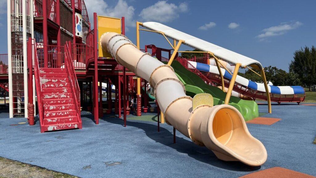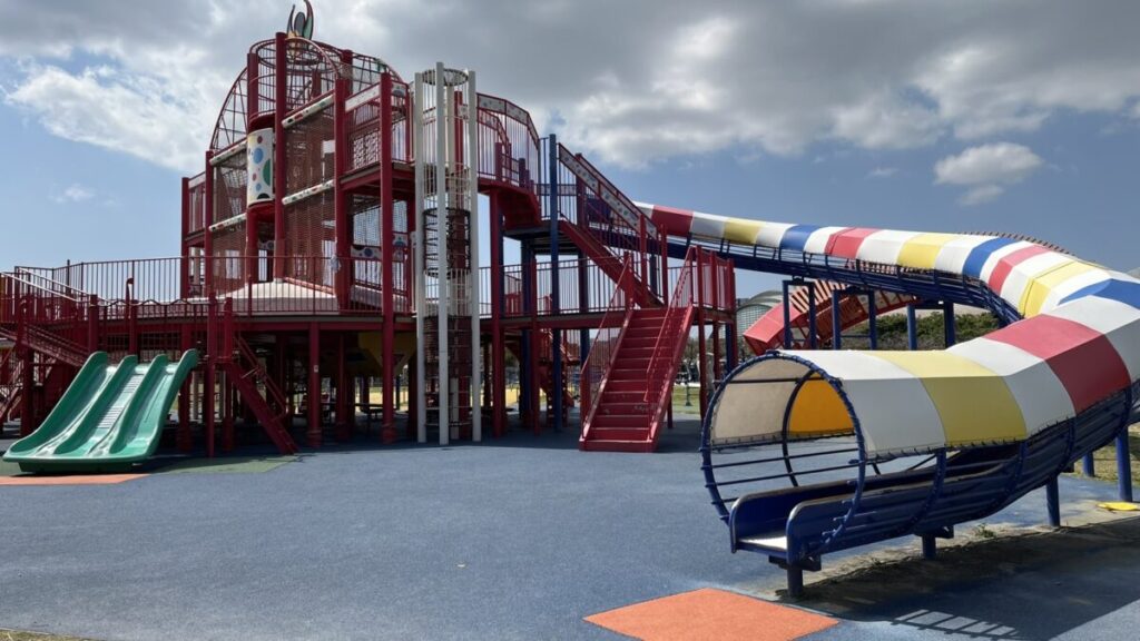 ここは県内でも最大級の公園で、今回は特に人気の「ちびっこ広場」と、そこから少し歩いた場所にある「大型遊具エリア」を巡ってきましたよ。