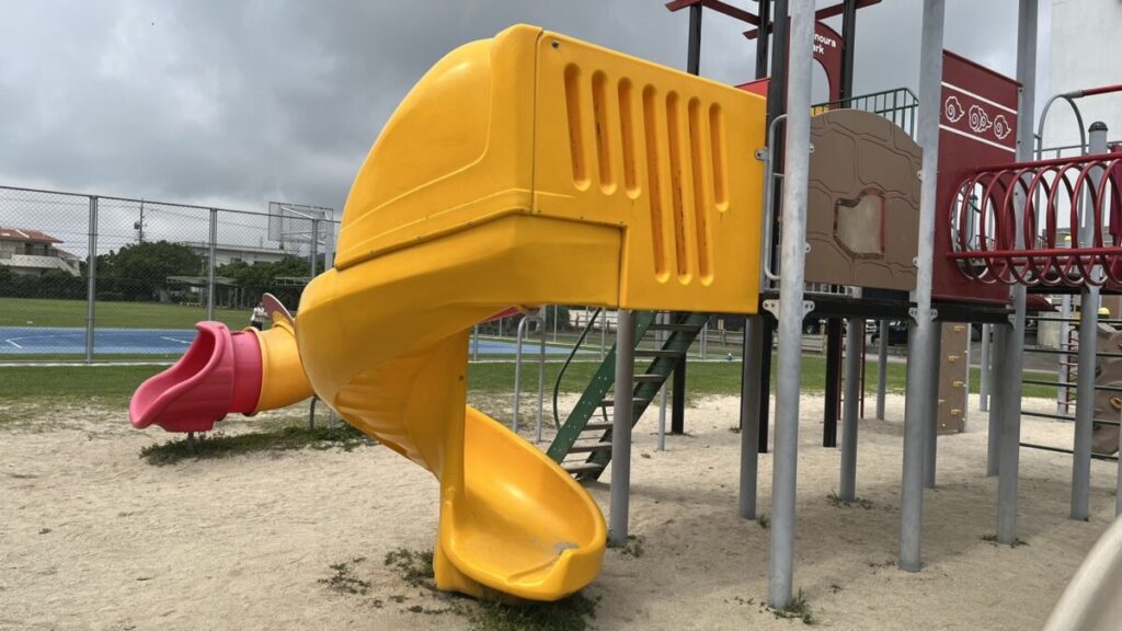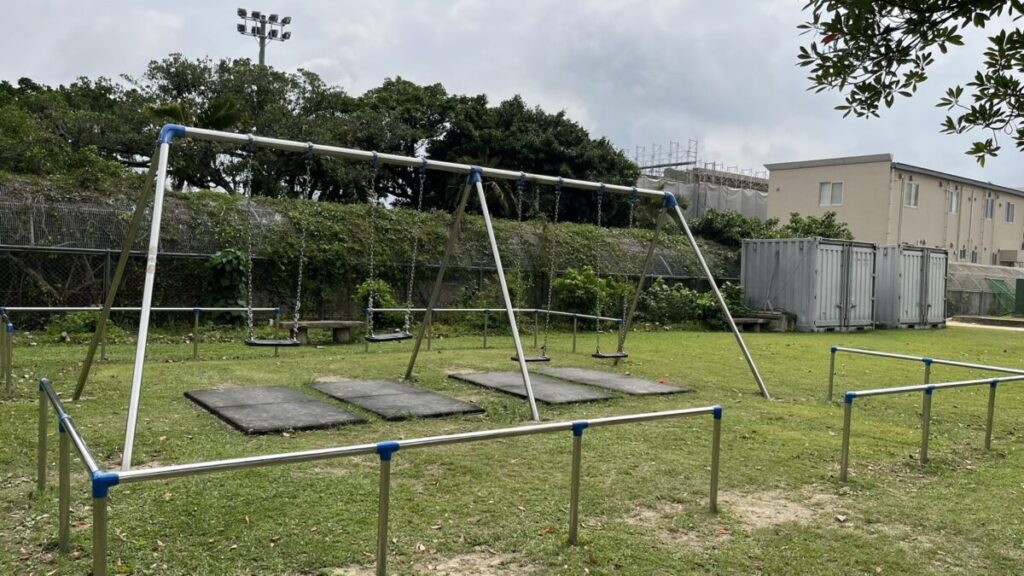 沖縄の強い日差しを避けながら、子どもたちが遊ぶ様子を見守れるのは本当に助かりますね。